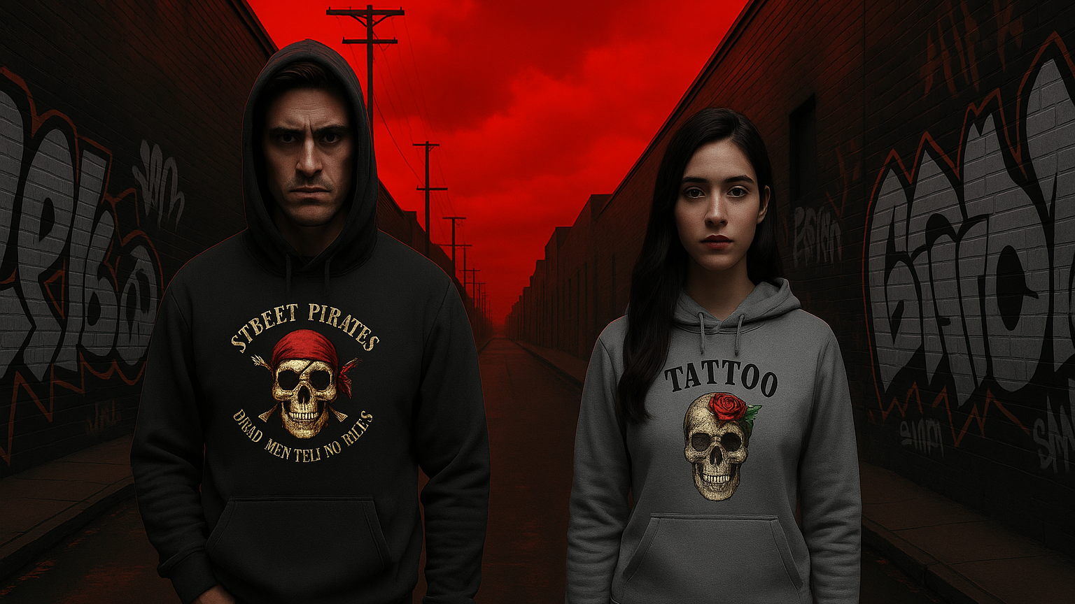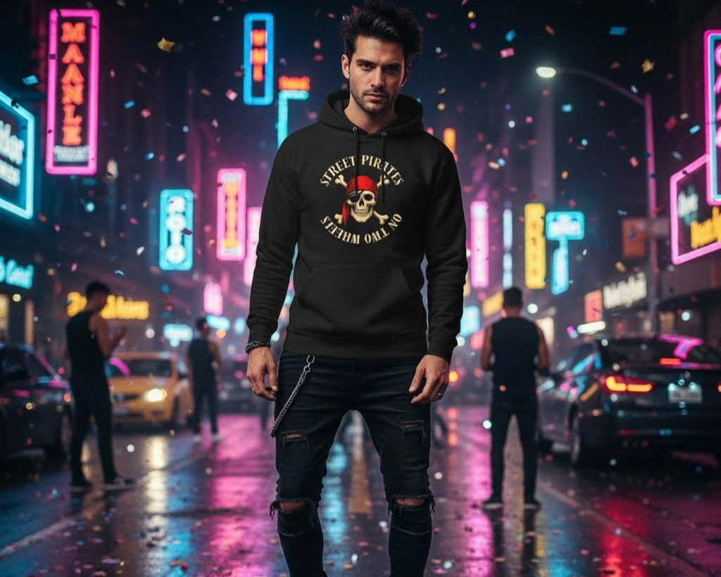 Street Pirates Hoodie – warm, bequem & rebellisch. Mit Totenkopf-Design für alle, die Freiheit auf zwei Rädern leben.