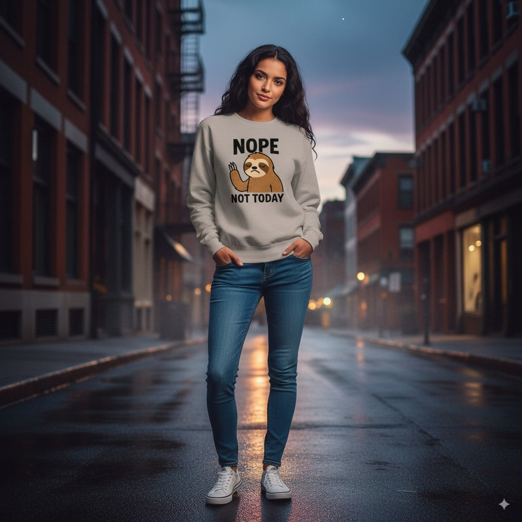 Nope – Not Today Sweatshirt: bequem, weich & lässig. Mit Faultier-Print der ideale Begleiter für alle, die auch mal Nein sagen.